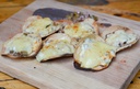Tortillas deshidratadas al carbon con cama de frijol y queso gratinado; acompado de ensalda de nopal.